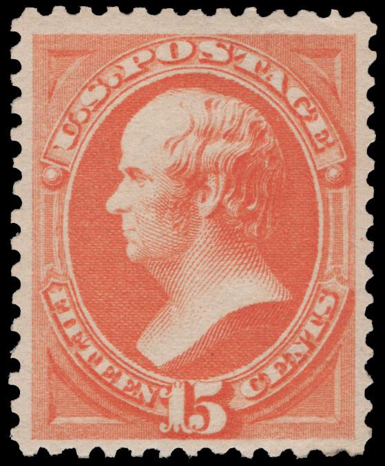 1879, 15c RED ORANGE ON SOFT MINT, #189, fresh and well-centered, lightly hinged o.g., fine-very fine, cat. $180.00 (Image)