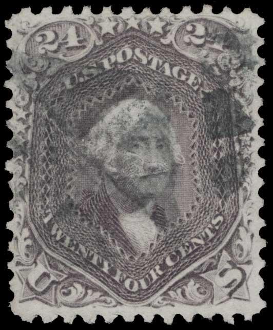 1862, 24c BROWN LILAC USED, #70a, well-centered, cork cancel, very fine, with 2008 PSE cert. graded '80', cat. $325.00, SMQ $350.00 (Image)