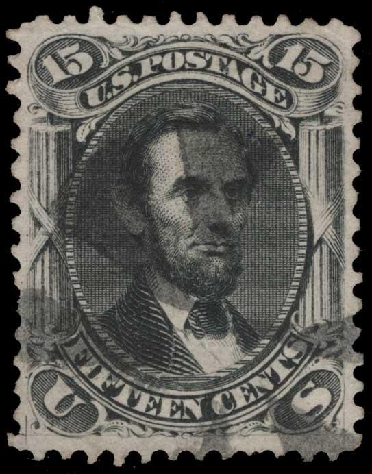 1866, 15c BLACK USED, #77, segmented cork cancel, well-centered and very fine, cat. $225.00 (Image)