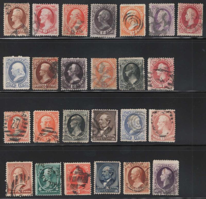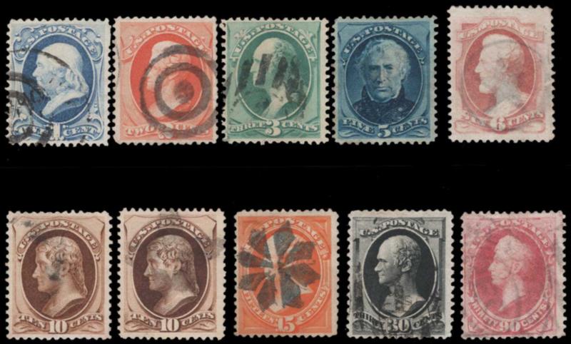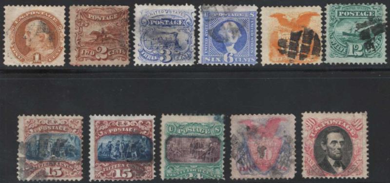 1861-66 ISSUE USED GROUP, #63, 65, 67a, 68-72, 75, 76, 77, basically all sound with centering and cancels as shown in the scan, attractive group, cat. $3,240.00 (Image)