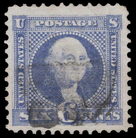 1869, 6c ULTRAMARINE USED GRADED '80J', #115, quite well-centered with oversized margins, very fine jumbo, with 2010 PSE cert. graded '80J', SMQ $400.00 (Image)