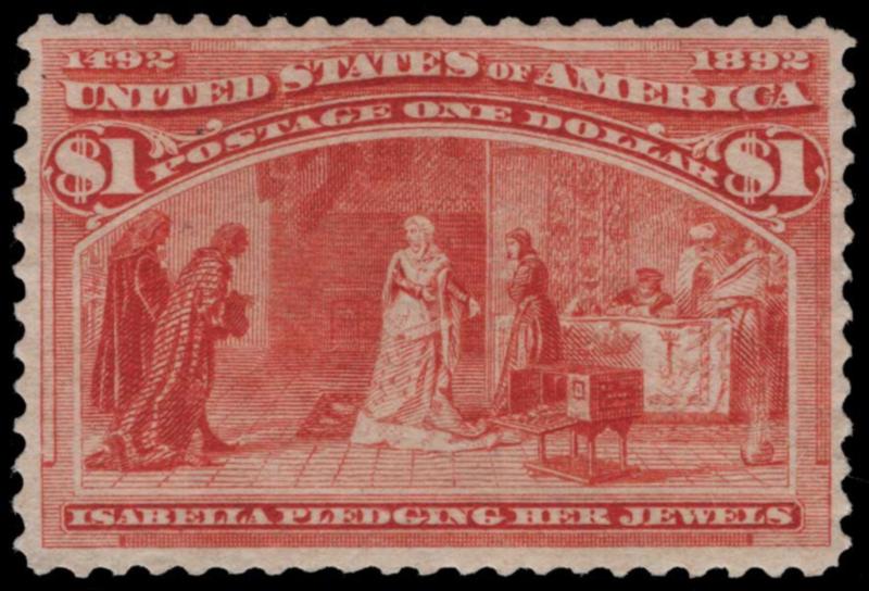 1893, $5 COLUMBIAN UNUSED, #245, well-centered, regummed over filled thin spots, very fine, cat. $1,250.00 (Image)