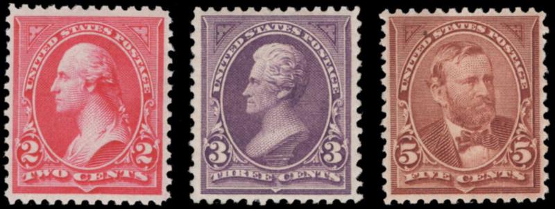 1894-95, 2c-5c FIRST BUREAU UNWMK MINT, #252a, 253, 255, previously hinged, very fine - extremely fine, cat. $375.00 (Image)