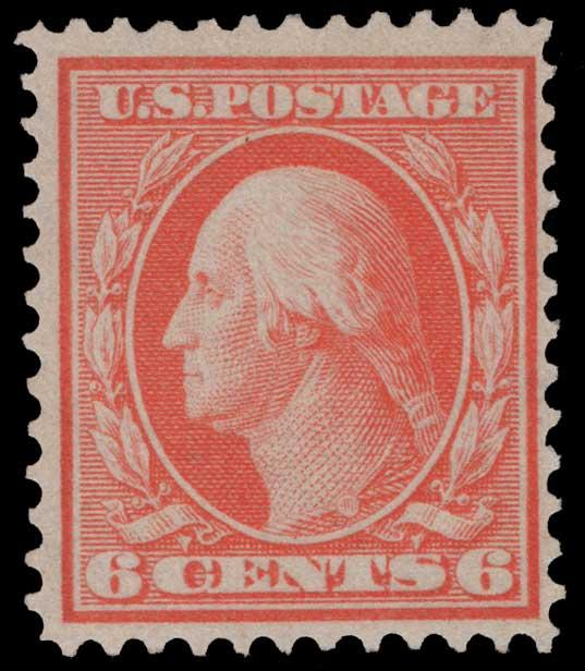 1909, 6c RED ORANGE ON BLUISH MINT, #362, lightly hinged, fine-very fine, with 1991 P.F. cert., cat. $1,300.00 (Image)