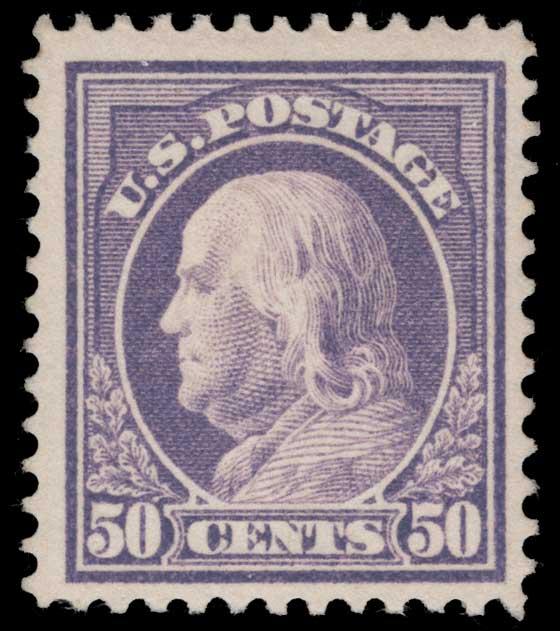 1914, 50c VIOLET SINGLE LINE WMK MINT, #421, fresh, lightly hinged, very fine, cat. $350.00 (Image)
