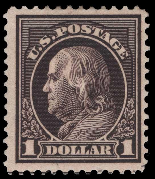 1915, $1 VIOLET BROWN DOUBLE LINE WMK MINT, #423, previously hinged, h.r., fine-very fine, cat. $475.00 (Image)