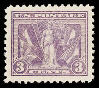 (537b) 3c Light Reddish Violet, OG, NH, nice strong light shade, four full and very well balanced margins all around, quite fresh and Extremely Fine Gem, this stamp is the only known example graded at this level and in addition it is the "Top Pop", since this stamp has been in the Victory collection for many years we wonder how Scott came up with the listed catalog value, it is certainly worth much, much more.