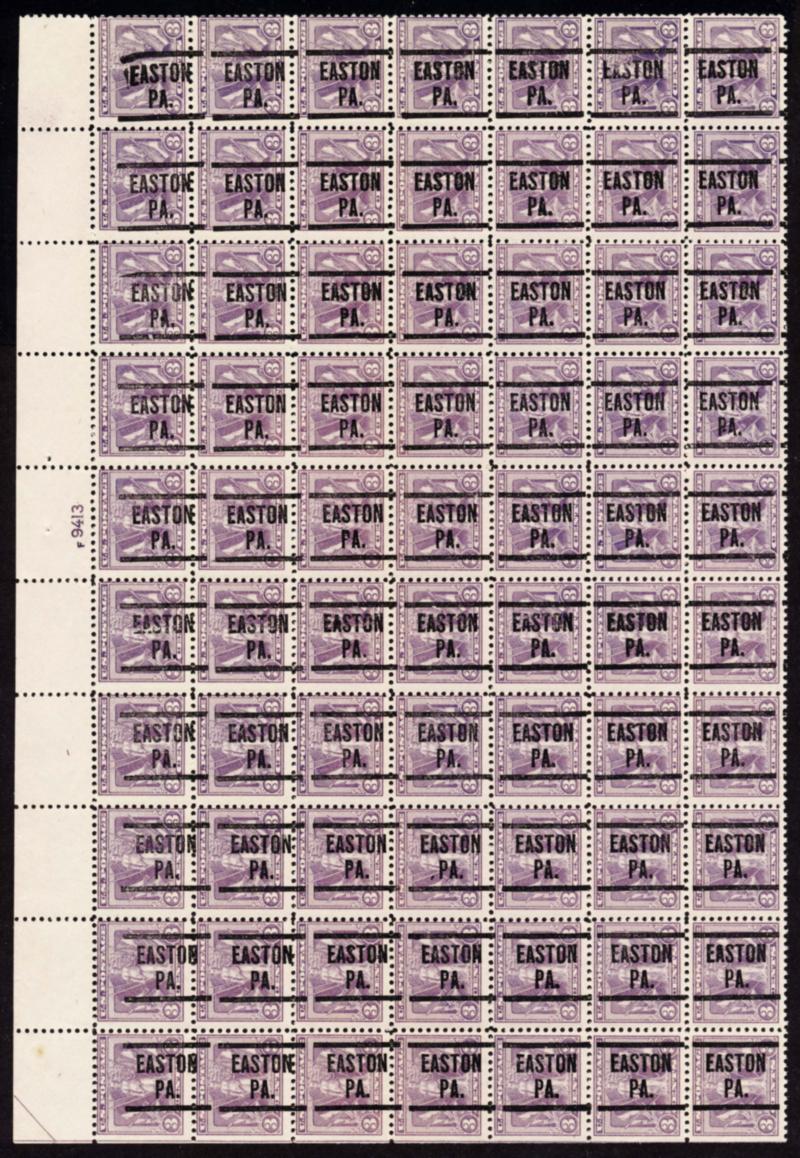 (537) 3c Violet, T.L. Pl. #F9413 Block of 70, Electrotype Bureau PC, "Easton PA", mostly OG, NH, Very Good-Fine, a most unusual and rare large multiple.