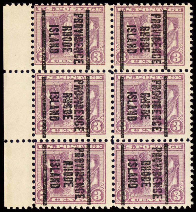 (537a) 3c Deep Red Violet, L. Pl. #9414 Block of Six, OG, H, most are LH, deep dark color, full side selvedge, incredibly well centered with every stamp being Very Fine or better, all six stamps in this block would grade at 90 or 95, there are only two recorded which are graded at 90 and Scott puts the value for a 90 hinged at $3,000 making the breakup value significantly higher than the catalog value for a plate block listed here, a most impressive multiple.