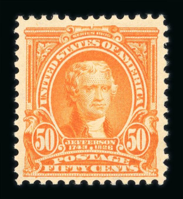 1903 50c orange, an exceptionally fresh and well centred mint n.h. example, very seldom seen so fine; cert. PF (1987). (Image)