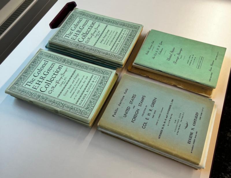 Colonel E.H.R. Green group of 18 auction catalogues (all different), incl. parts VI, VII, VIII, X, XI section 1 and section 2, XIV, XV, XVII, XVIII, XIX, XXI, XXII, XXIV, XXV, XXVI, XXVIII, and an unnumbered sale from Jan 1944 by Morgenthau & Co (loose covers), five with prices realised. (Image)