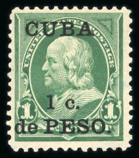 1899 1c. de peso on 1c Franklin from the special printing in March 1900 for display at Paris and Pan-American Exposition. One pane of each denomination was used. Fine and fresh hinged mint, The Philatelic Foundation Cert (1981). (Image)