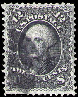 1867, 12¢ Washington, black, F. grill (Scott 97), Very Fine. Scott $260. Estimate $120 - 180. (Image)