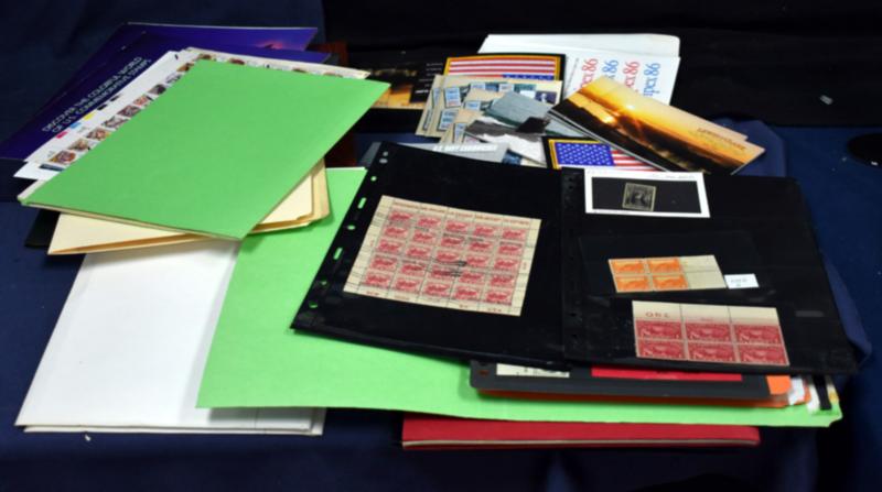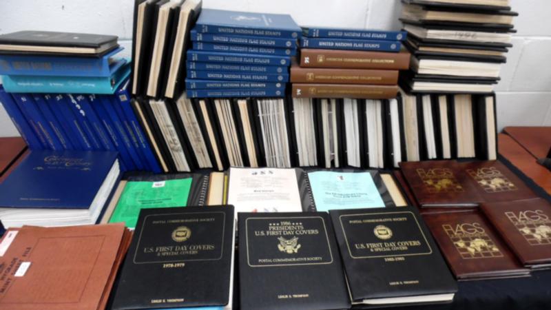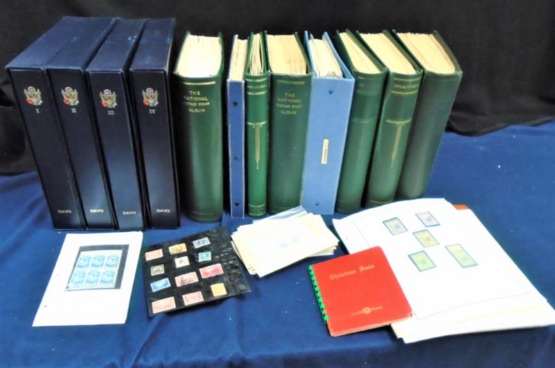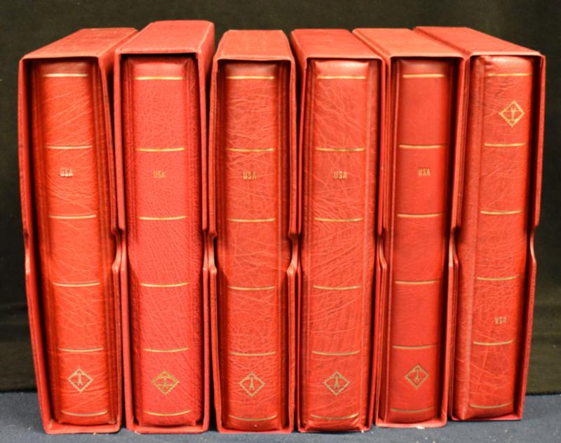 One man’s collection as received in two cartons comprised of postage and postal products. The bulk of the value is in a pair of Minuteman albums with virtually complete postage from the 4-cent era to the 32 centers and some useful pickings prior to 1960. However, the bulk of the weight is 8 binders of several hundred USPS souvenir pages. A bit of miscellaneous rounds out the lot. Quite useful to the right bidder. (Image)