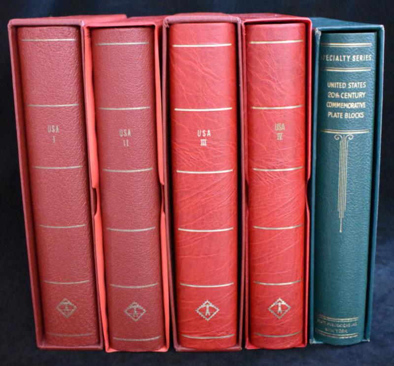 An impressive 1893 through 1995 mostly commemorative four volume collection in like brand-new Lighthouse albums with slip cases. The earlier issues are sparsely populated but picks up speed with the 1920 issues. Also includes early airmails and a bit of Back of the Book. Most are NH, even the earlier issues so much better quality than normally encountered. Also includes a small assembly of 1940’s to 1960’s commemorative plate block in a Scott national album thrown in for a bonus. Perfect opportunity for a serious collecting endeavor. (Image)