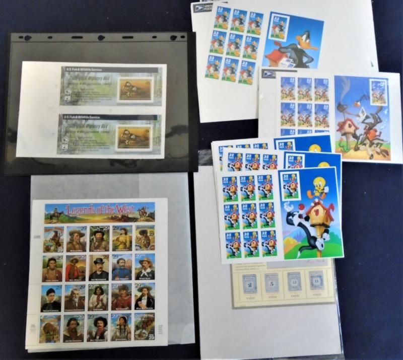 Consignment remainder assembly. Includes four Legends of the West error sheets, a unique used White Plains sheet, over $550.00 face, and a few other goodies worth probing for. Take a quick peek. (Image)