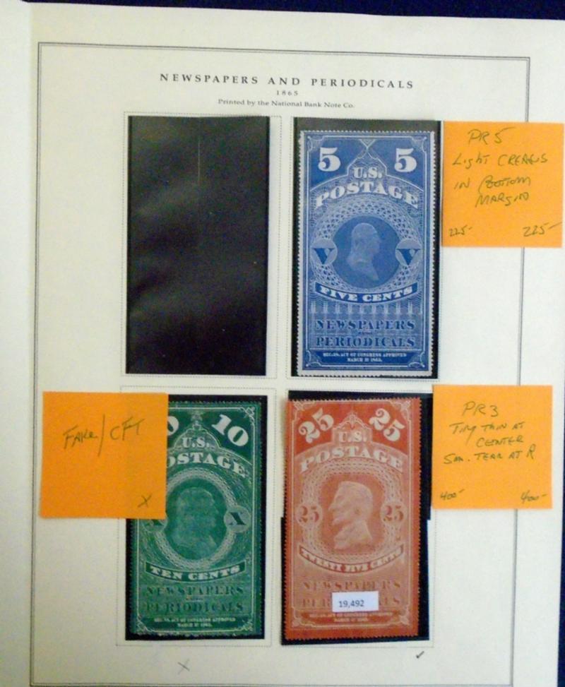 An assortment of newspaper stamps. Some are perfed proofs, some reperfed, two forgeries and others of mixed condition. Four of the stamps have certifications. There are images for all stamps. An interesting group that requires close examination. Worth a view. (Image)