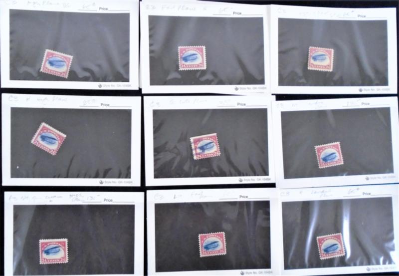 One hundred or so dealer cards with many off-center stamps. Scott # 294, 295 and C3 have the most representation. An interesting lot for vignette shifts. Much duplication that a specialist will appreciate. An opportunity to acquire some interesting material. Take a careful look. (Image)