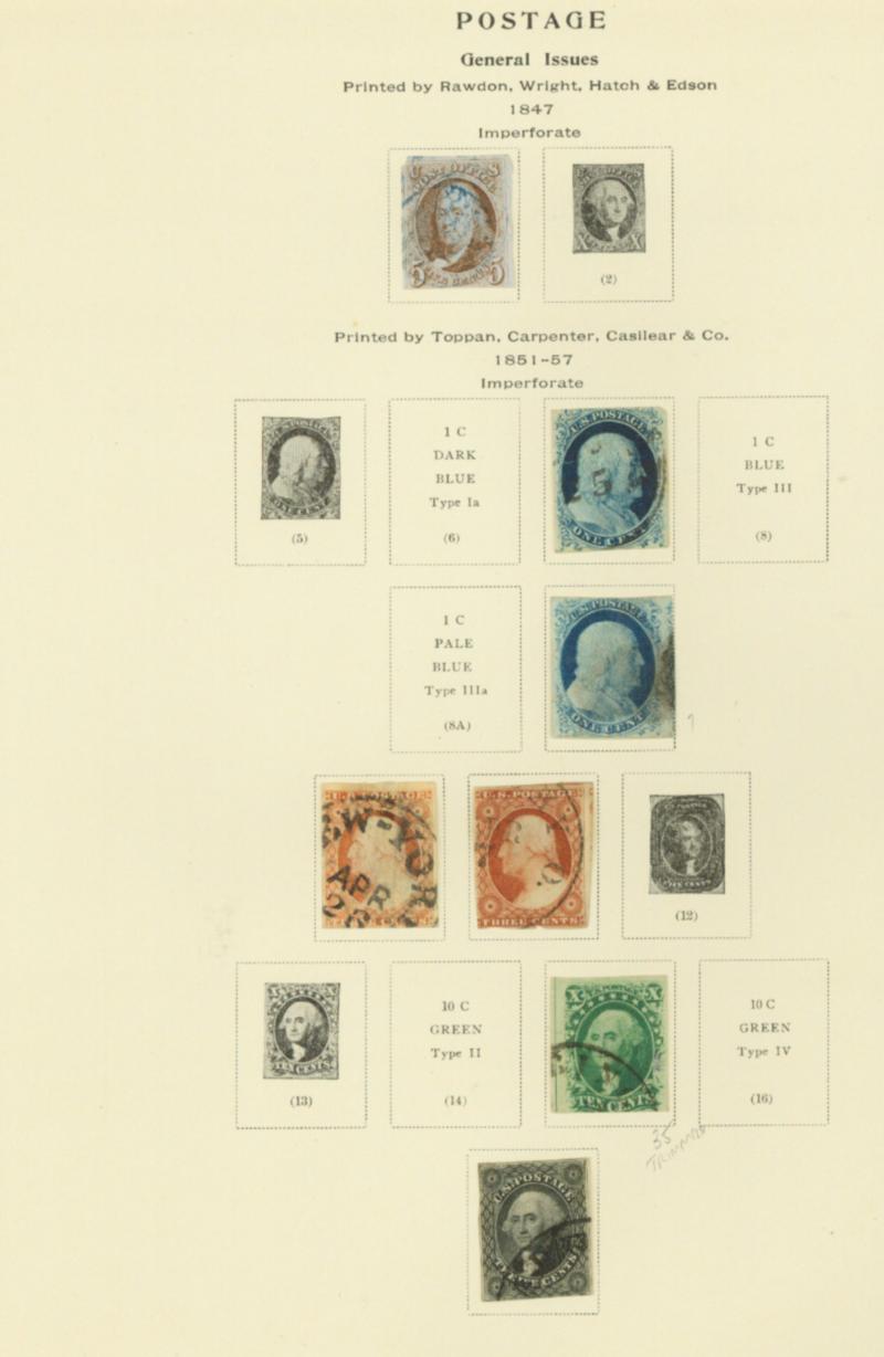 Thirty-four pages removed from a Scott National album with mostly moderate to high catalog issues. Starts with a five cent 1847 and continues to #550. Also includes a page of special deliveries, a couple pages of dues, and a page of parcel posts. Condition varies significantly but much is fine or better with a good number of useful stamps. See the photos for a taste of this one. Owner’s reliable catalog value about $24,000. (Image)