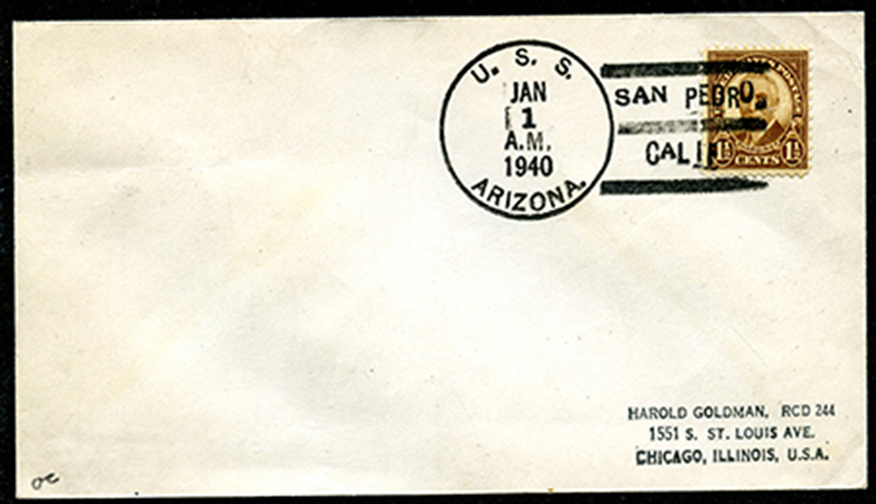 UNITED STATES OF AMERICA: 684: 1940 New Year's Day cover from U.S.S. ARIZONA, very fine. (Image)