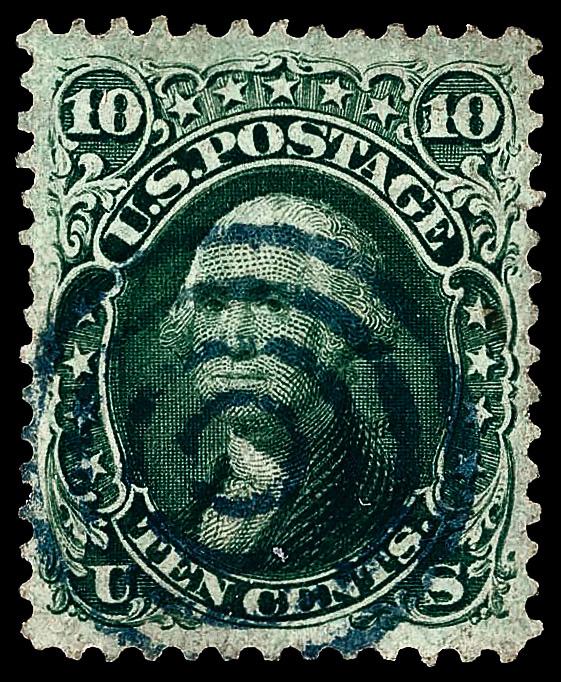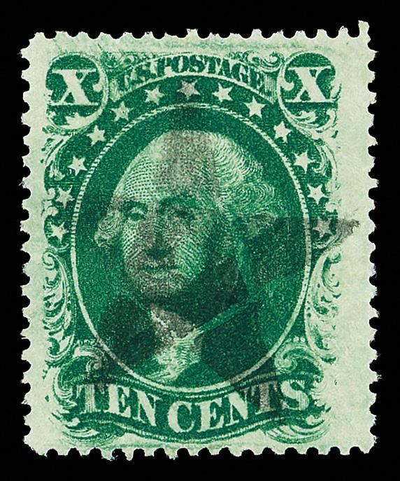 1861, 10¢ green (Scott 68), blue target cancel, Extremely Fine, with 2025 P.F. certificate graded XF 90. SMQ XF 90; $275. (Image)