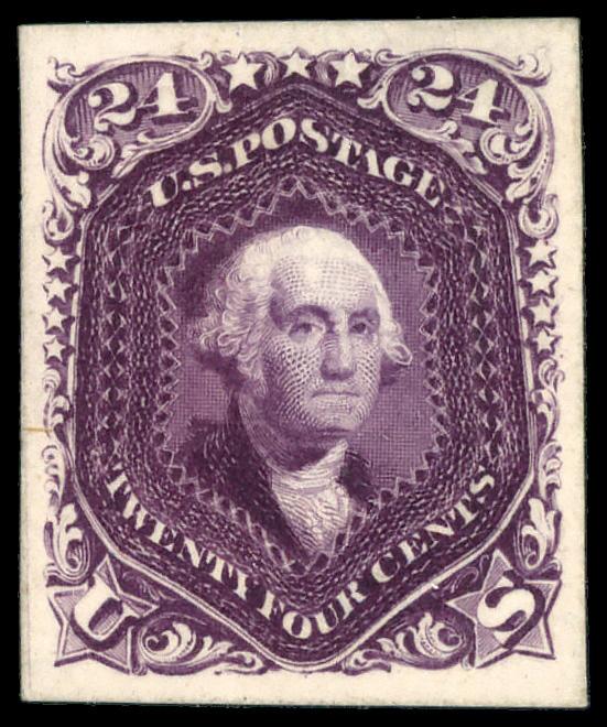 1862, 24¢ red lilac, plate proof on card (Scott 70P4), without gum as issued, Extremely Fine. Scott $500. (Image)