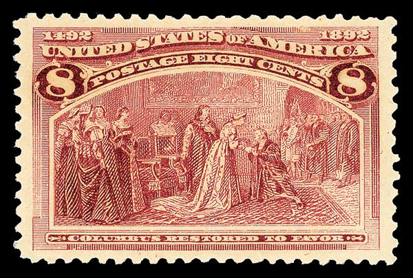 1893, 8¢ Columbian (Scott 236), pure, unblemished condition, o.g., never hinged, Very Fine to Extremely Fine, with 2017 P.S.E. certificate graded VF-XF 85J. SMQ VF-XF 85J; $300. (Image)