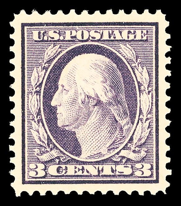 1911, 3¢ deep violet, type I, S.L. watermark (Scott 376), pristine freshness throughout, o.g., never hinged, Extremely Fine to Superb, with 2019 P.S.A.G. certificate graded XF-SUP 95. SMQ XF-SUP 95; $300. (Image)