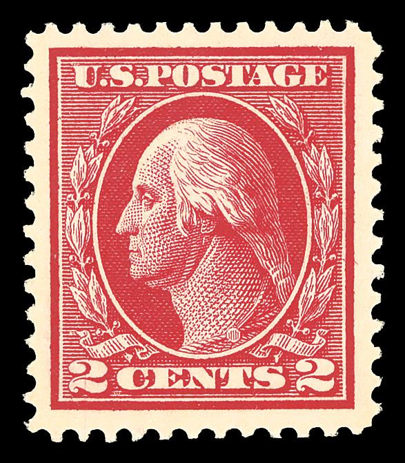 1912, 2¢ carmine, type I, S.L. watermark, perf. 12 (Scott 406), sharp, attractive strike, o.g., never hinged, Extremely Fine to Superb, with 2008 P.S.E. certificate graded XF-SUP 95. SMQ XF-SUP 95; $200. (Image)