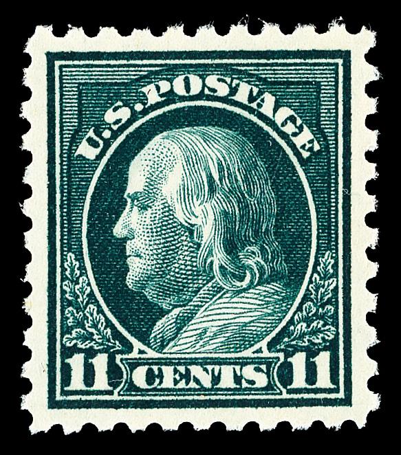 1915, 11¢ dark green, S.L. watermark, perf. 10 (Scott 434), Brilliantly fresh example, o.g., previously hinged, Superb, with 2025 P.S.E. certificate graded SUP 98. SMQ SUP 98; $175. (Image)