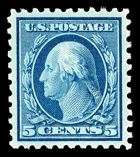 1916, 5¢ blue, unwatermarked, perf. 10 (Scott 466), well-proportioned margins, o.g., previously hinged, Extremely Fine to Superb, with 2025 P.S.E. certificate graded XF-SUP 95. SMQ XF-SUP 95; $150. (Image)