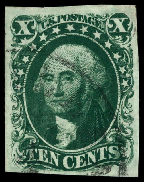 1855, 10¢ green, type III (Scott 15), Very Fine. Scott $145. (Image)