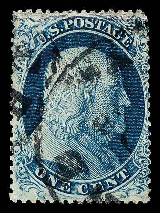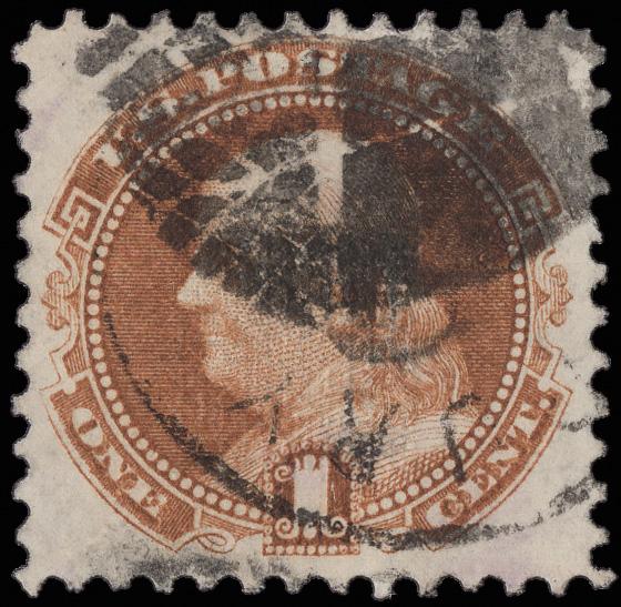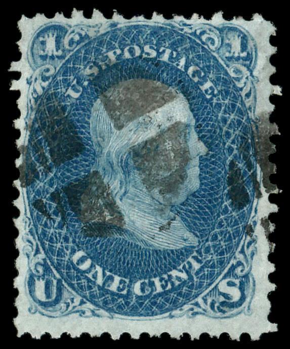 1867, 1¢ blue, F. grill (Scott 92), Fine. Scott $400. (Image)