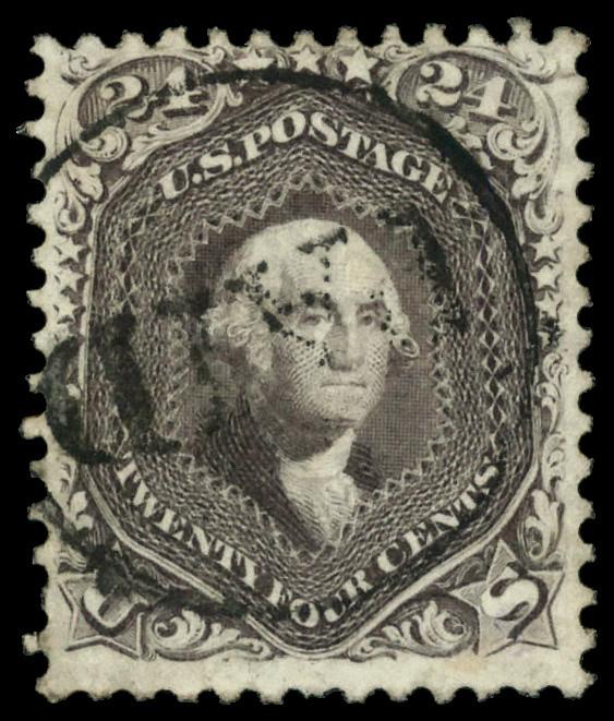 1862, 24¢ red lilac (Scott 70), 'PAID' cancel, Fine. Scott $315. (Image)