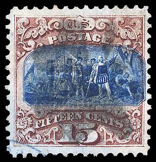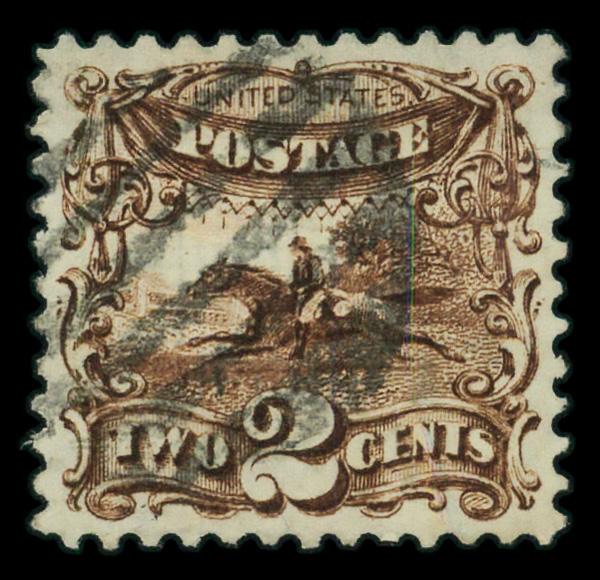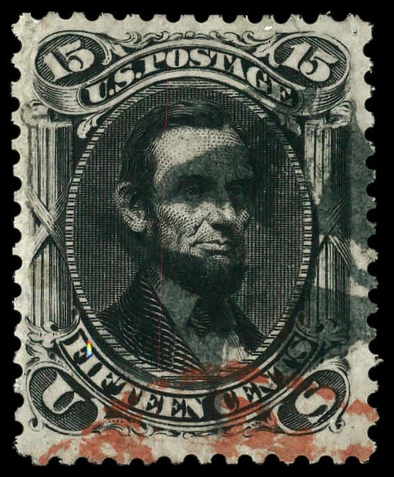1866, 15¢ black (Scott 77), red & black cancels; reperfed, Fine to Very Fine. Scott $240. (Image)