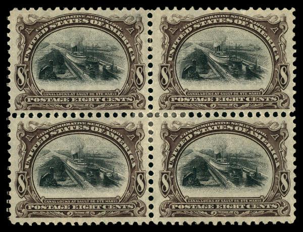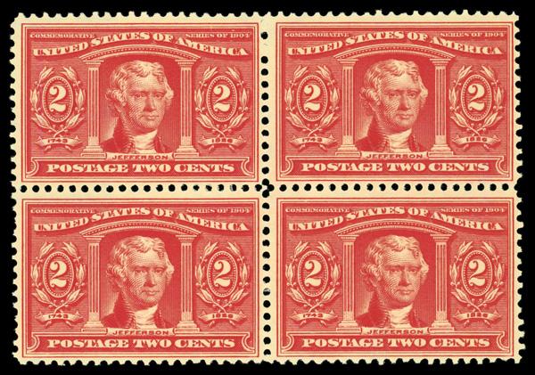 1904, 2¢ Louisiana Purchase (Scott 324), block of 4, o.g., previously hinged, Fine to Very Fine. Scott $100. (Image)