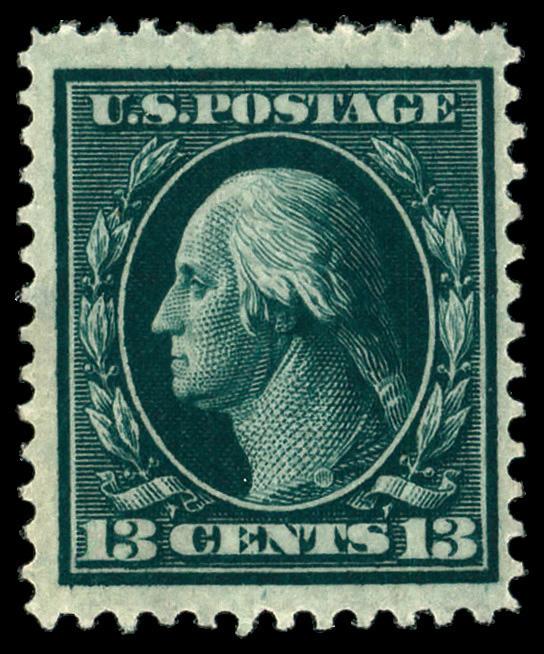 1909, 13¢ blue green, D.L. watermark (Scott 339), o.g., lightly hinged, Very Fine. Scott $40. (Image)
