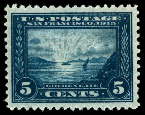 1913, 5¢ Panama-Pacific, perf. 12 (Scott 399), o.g., never hinged, Very Fine to Extremely Fine. Scott $160. (Image)