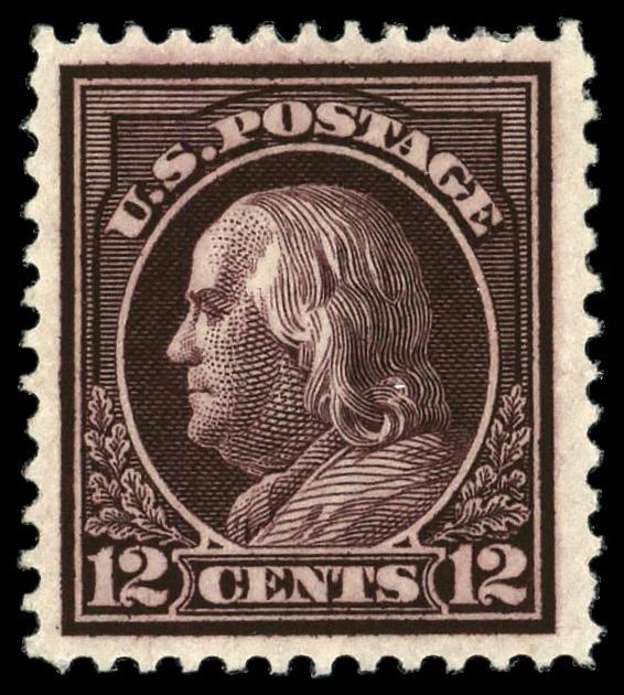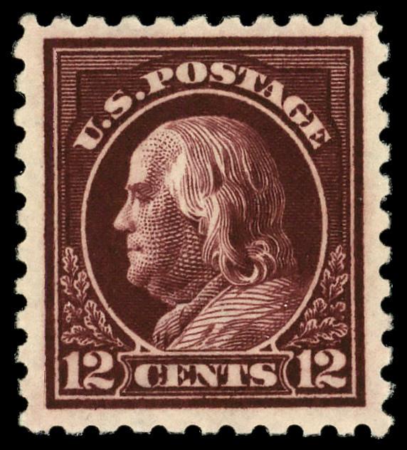 1914, 12¢ claret brown, S.L. watermark, perf. 10 (Scott 435), o.g., small hinge remnant, Very Fine to Extremely Fine. Scott $30. (Image)