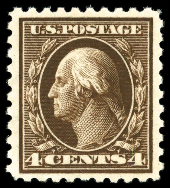 1914, 4¢ brown, S.L. watermark, perf. 10 (Scott 427), o.g., hinged (pencil mark on gum), Very Fine. Scott $35. (Image)