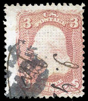 1867, 3¢ Washington, rose, D. grill (Scott 85), good color and a well-defined grid, Very Good to Fine. Scott $1,050. (Image)