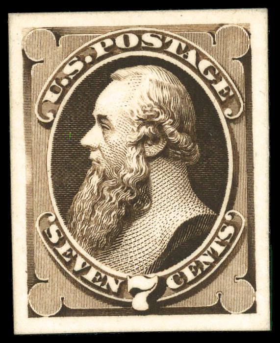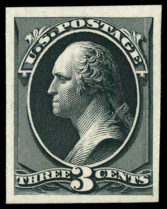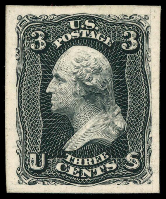 1861-66 (1875 Re-issue), 3¢ black, "Atlanta" trial color plate proof on card (Scott 104TC4a), without gum as issued, Extremely Fine. Scott $100. (Image)