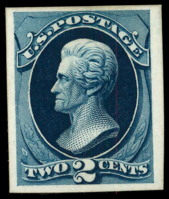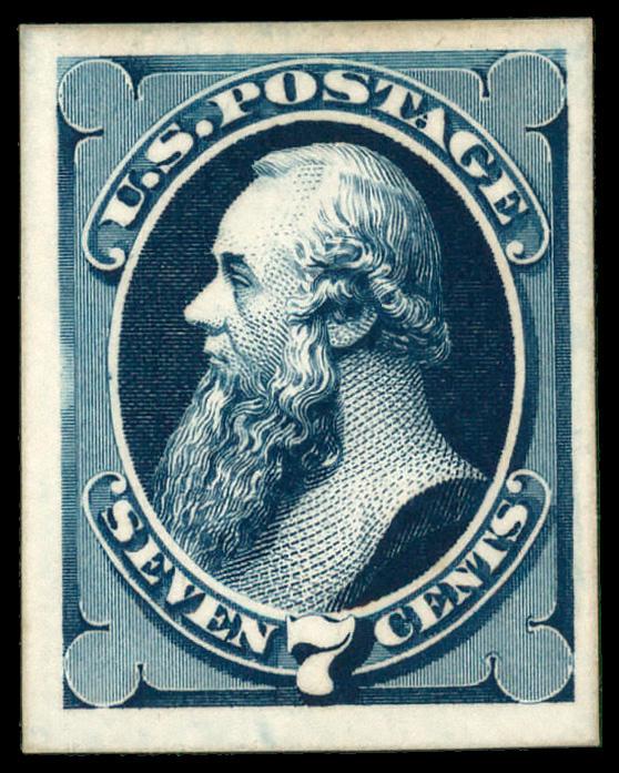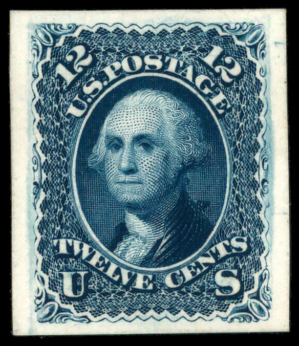1861-66 (1875 Re-issue), 12¢ blue, "Atlanta" trial color plate proof on card (Scott 107TC4e), without gum as issued, Very Fine to Extremely Fine. Scott $90. (Image)
