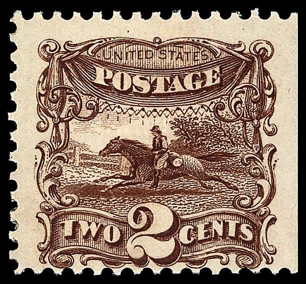 1869, 2¢ brown (Scott 113), o.g., hinge remnant; straight edge at right, Fine, with photocopy of 1989 P.F. certificate for block of which this is the LR stamp. Scott $500. (Image)