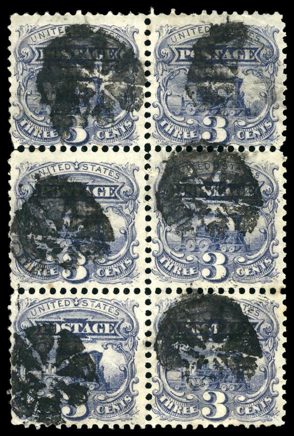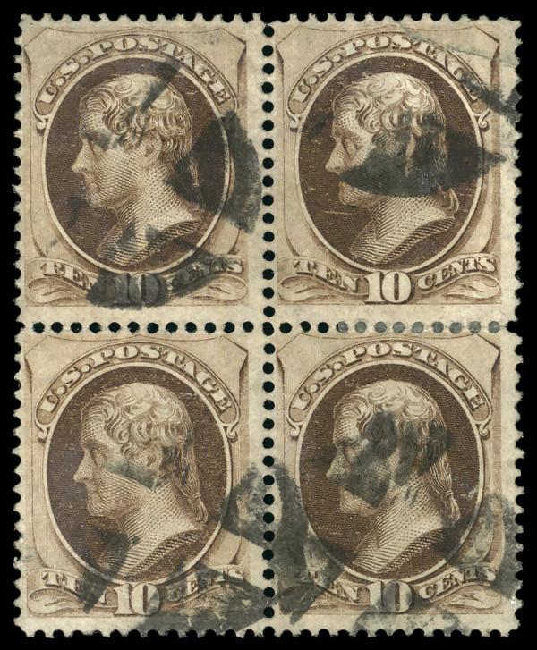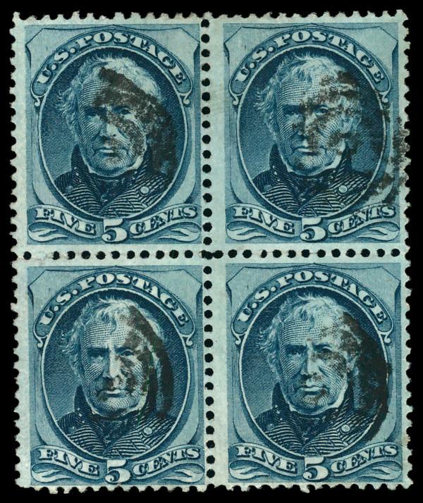 1875, 5¢ blue, C.B.N.C. printing (Scott 179), block of 4, Fine. Scott $380. (Image)