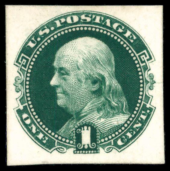 1869 (1875 Re-issue), 1¢ green, "Atlanta" trial color plate proof on card (Scott 123TC4d), without gum as issued, Extremely Fine. Scott $150. (Image)