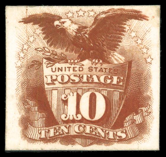 1869 (1875 Re-issue), 10¢ scarlet, "Atlanta" trial color plate proof on card (Scott 127TC4b), without gum as issued, Fine to Very Fine. Scott $150. (Image)
