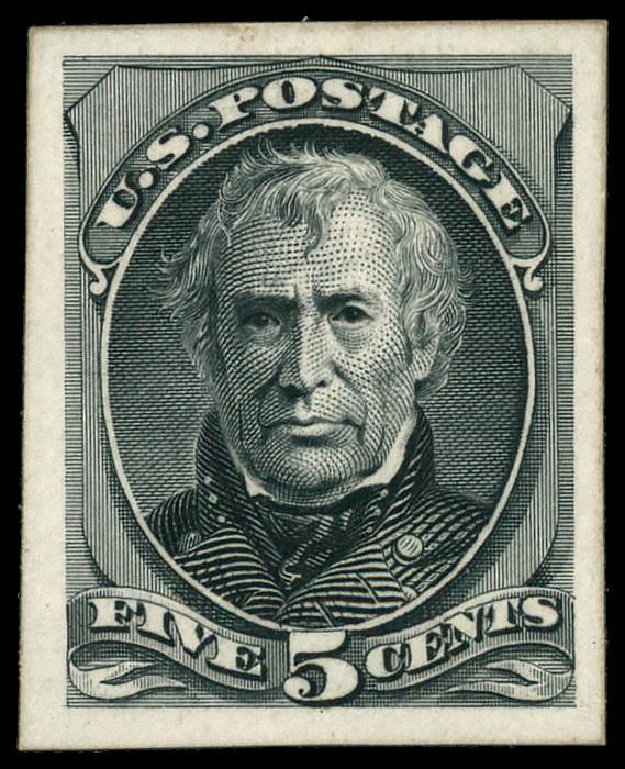 1875, 5¢ black, C.B.N.C. printing, "Atlanta" trial color plate proof on card (Scott 179TC4a), without gum as issued, Extremely Fine. Scott $80. (Image)