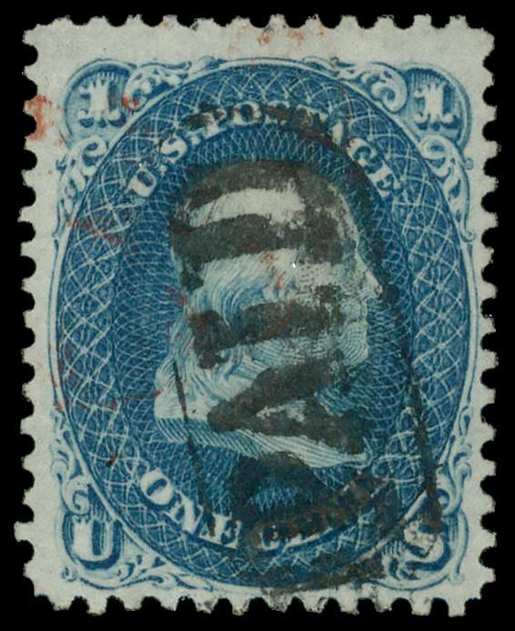 1861, 1¢ blue (Scott 63), 'PAID' cancel, Fine to Very Fine. Scott $48. (Image)