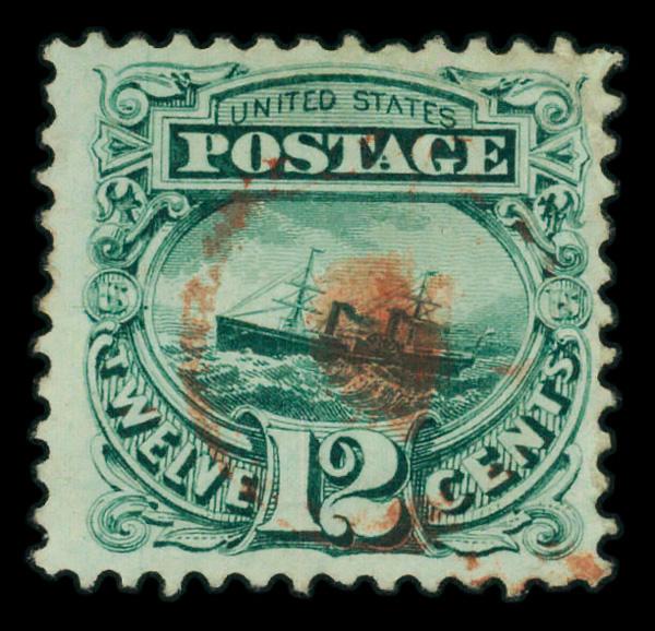 1869, 12¢ green (Scott 117), red cancel, Very Fine to Extremely Fine. Scott $280. (Image)